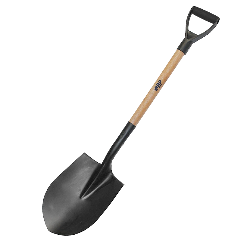 Pala puntona de acero con mango plástico, resistente y eficiente para trabajos exigentes en minería y construcción.